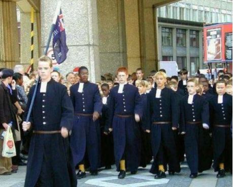 歐洲的校服仍然維持著它一直以為低調(diào)和貴族的傳統(tǒng),被譽(yù)為最正統(tǒng)的校服,沿用了多年的皇室制服款式。英國(guó)校服款式經(jīng)典、簡(jiǎn)潔大方,中學(xué)生必須穿著正統(tǒng)西式校服,男生為正統(tǒng)西裝、正規(guī)皮鞋、需要佩戴領(lǐng)帶,女生也是統(tǒng)一西式正統(tǒng)服裝、正規(guī)女式皮鞋、必須佩戴領(lǐng)花,不論是?;?、帽徽,無(wú)一不顯示著英國(guó)人特有的風(fēng)度和氣質(zhì)。也不知是歐洲的學(xué)生更嚴(yán)肅還是校方更強(qiáng)硬,他們的態(tài)度似乎是“學(xué)生就要穿得像個(gè)學(xué)生的樣子”。他們對(duì)校服的重視程度也不輸給日本,認(rèn)為校服是培養(yǎng)學(xué)生紀(jì)律意識(shí)最直接的手段。