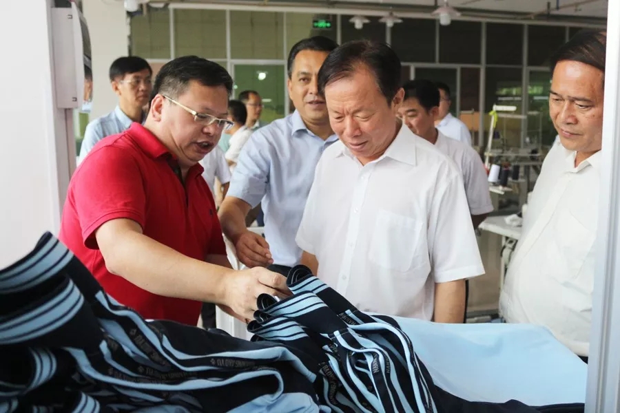 徐紹川來到百裕集團(tuán)生產(chǎn)中心,先后參觀考察了黨建展廳、黨群文化活動(dòng)中心、生產(chǎn)車間、校服文化展示中心等地,集團(tuán)董事長(zhǎng)許曲煌、百裕實(shí)業(yè)黨支部曾晏來書記等陪同考察。