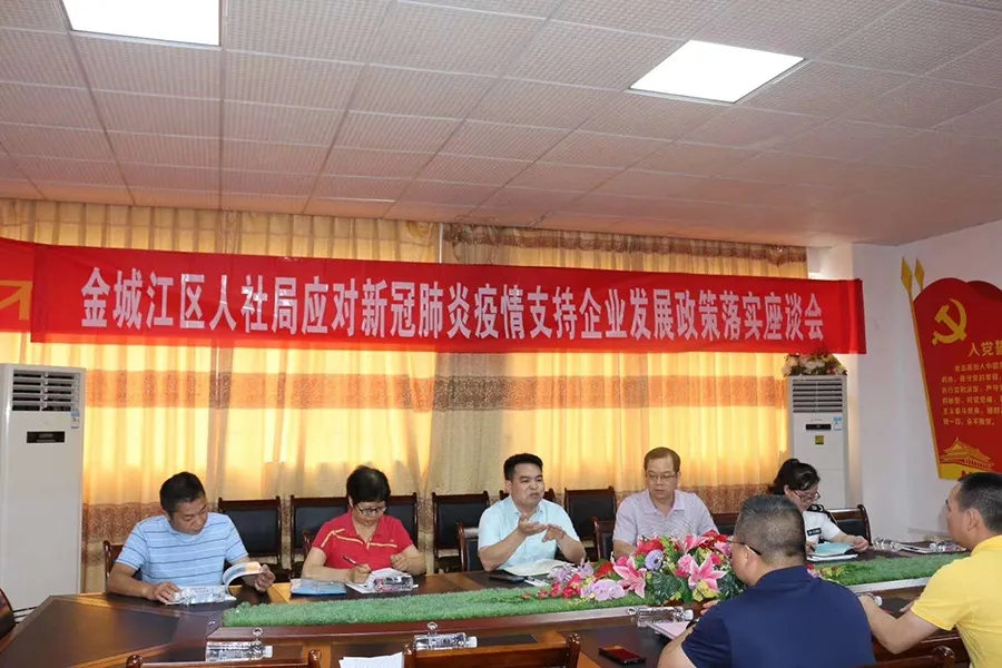 隨后,蘭軍城局長(zhǎng)一行與林志煌總經(jīng)理等管理人員和職工代表開(kāi)展座談,深入了解和掌握公司在用人招聘、員工參保、崗位提升培訓(xùn)等方面的情況,并就公司關(guān)心的疫情期間員工待崗工資支付、勞動(dòng)關(guān)系處理、社保繳納等問(wèn)題進(jìn)行了現(xiàn)場(chǎng)解答。當(dāng)了解到受此次疫情影響,公司復(fù)工后訂單量比去年同期減少了20%的情況后,蘭軍城局長(zhǎng)鼓勵(lì)公司要堅(jiān)定信心,并表示金城江區(qū)人社部門(mén)將持續(xù)為企業(yè)排憂(yōu)解難,把國(guó)家、自治區(qū)、河池市和金城江區(qū)本級(jí)各級(jí)支持企業(yè)復(fù)工復(fù)產(chǎn)的“穩(wěn)就業(yè)”優(yōu)惠政策落到實(shí)處,幫助企業(yè)減少疫情帶來(lái)的損失,全面助力企業(yè)發(fā)展。