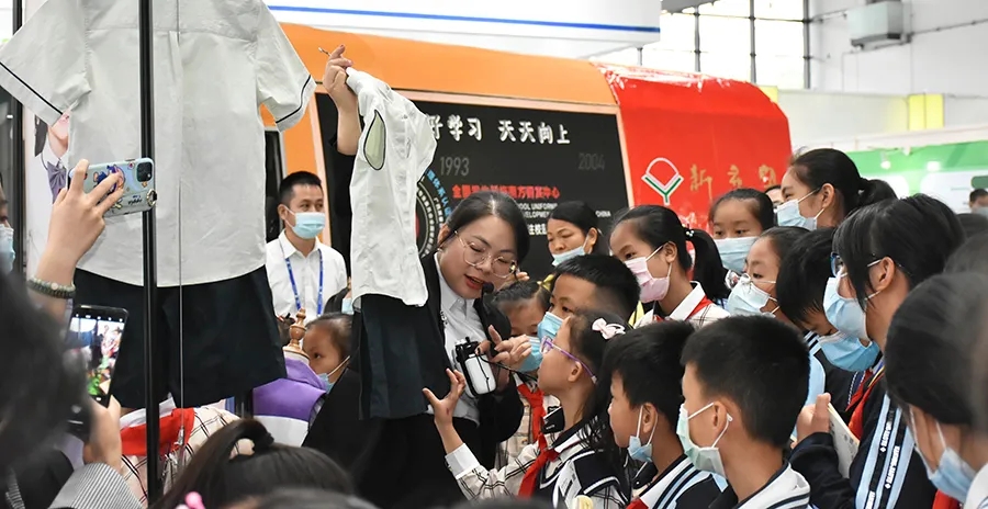 “百裕校園時(shí)代”以“科技創(chuàng)新、著裝育人、呵護(hù)明天、文化傳承”為品牌理念,切合當(dāng)代學(xué)生對(duì)校園服飾文化的需求,現(xiàn)場(chǎng)深受學(xué)生們的關(guān)注,現(xiàn)場(chǎng)人頭攢動(dòng),圍成了一個(gè)小型講堂。