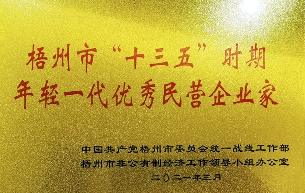 “梧州市十三五’時期年輕一代優(yōu)秀民營企業(yè)家”稱號是為貫徹落實中央、自治區(qū)黨委和梧州市委關于民營經濟“兩個健康”發(fā)展的工作部署,營造尊重民營企業(yè)家價值、鼓勵年輕一代民營企業(yè)家創(chuàng)新創(chuàng)業(yè)的社會環(huán)境,進一步增強年輕一代民營企業(yè)家的自豪感和發(fā)展信心,助力做好“六穩(wěn)”工作、落實“六?!比蝿斩O立,,為“十四五”開好局、起好步作出積極貢獻,以優(yōu)異成績慶祝中國共產黨成立100周年