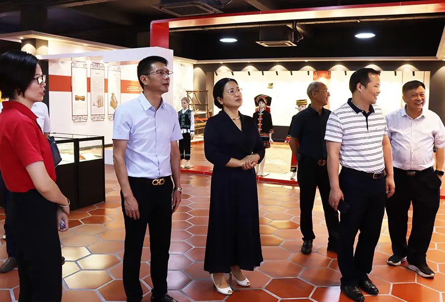 調研組參觀了百裕校服文化館,在參觀過程中,聽取了百裕世紀總經理曾晏來關于文化館的設計理念及校服生產的情況匯報,詳細了解我公司在少數(shù)民族地區(qū)服裝設計理念,企業(yè)在生產經營過程中,牢牢把握鑄牢中華民族共同體意識工作主線,注重企業(yè)文化建設各方面的活動及舉措。