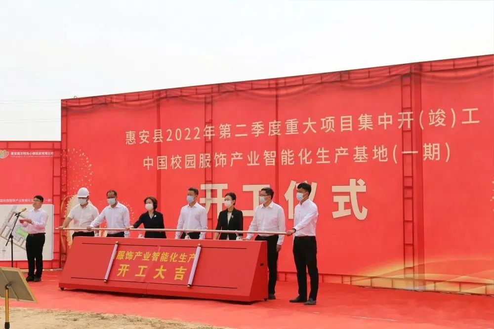 4月13日上午9時(shí)許,城南工業(yè)區(qū)(中國校園服飾產(chǎn)業(yè)基地)內(nèi),惠安縣隆重舉行中國校園服飾產(chǎn)業(yè)智能化生產(chǎn)基地一期項(xiàng)目開工儀式。中共惠安縣委書記王春雷,縣政協(xié)主席許貞麗,縣委副書記黃麗瓊,縣委常委、常務(wù)副縣長蔡旭萌、螺陽鎮(zhèn)黨委王海演書記、鎮(zhèn)長林少杰和項(xiàng)目業(yè)主代表辛景文等出席開工儀式并共同為項(xiàng)目開工推桿啟動(dòng)。副縣長郭惠卿主持開工儀式并介紹項(xiàng)目情況。