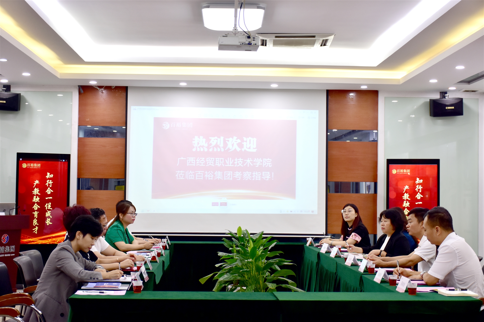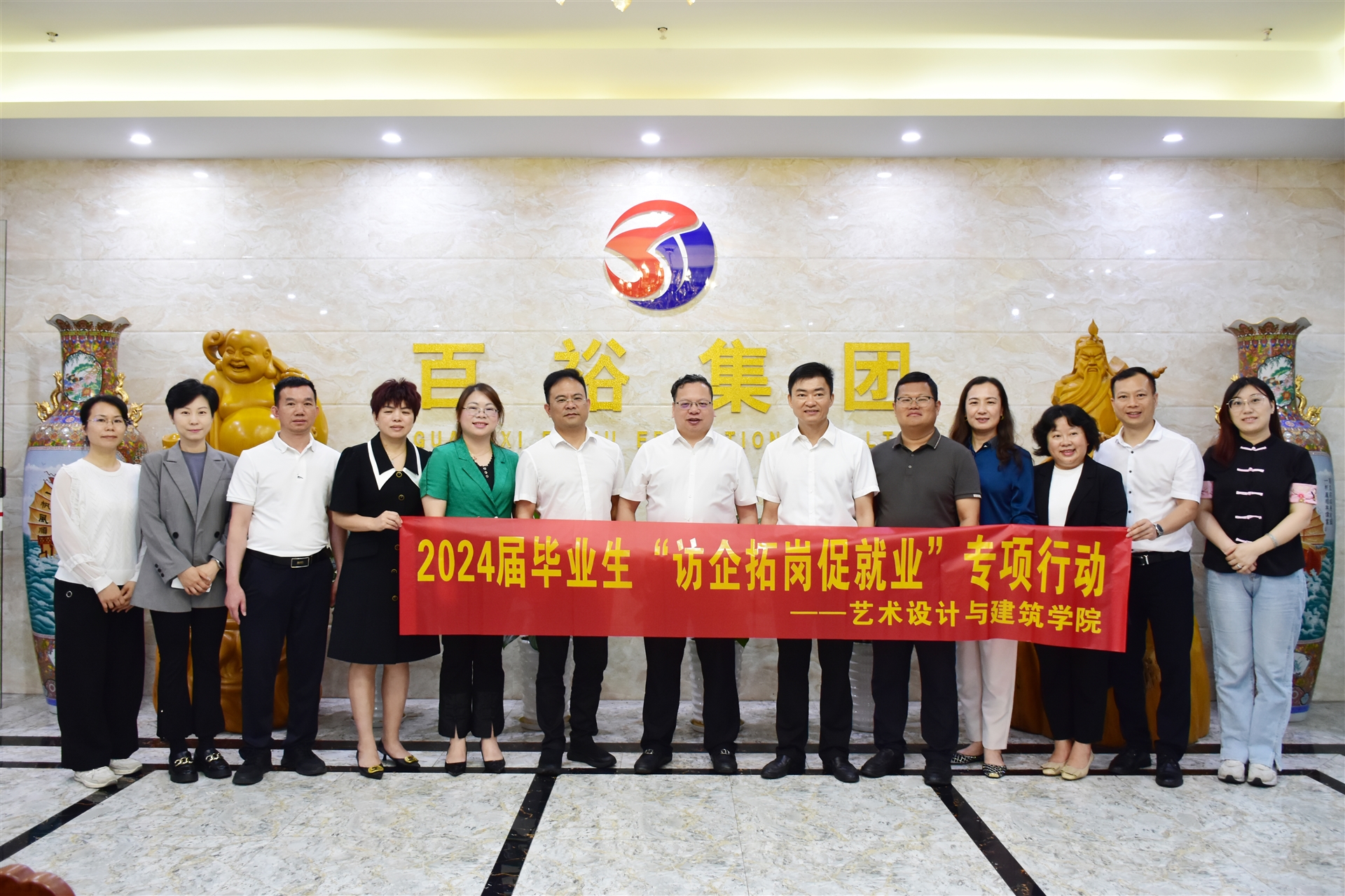 為推進(jìn)“高校書記校長(zhǎng)訪企拓崗促就業(yè)”專項(xiàng)行動(dòng),促進(jìn)雙方優(yōu)勢(shì)互補(bǔ),實(shí)現(xiàn)資源共享、協(xié)同育人。5月9日上午,廣西經(jīng)貿(mào)職業(yè)技術(shù)學(xué)院校長(zhǎng)羅生芳帶隊(duì)蒞臨百裕集團(tuán)營(yíng)銷中心開展訪企拓崗專項(xiàng)活動(dòng)。藝術(shù)設(shè)計(jì)與建筑學(xué)院黨總支書記陳雪雯、藝術(shù)設(shè)計(jì)與建筑學(xué)院院長(zhǎng)陳超華、藝術(shù)設(shè)計(jì)與建筑學(xué)院專職副書記朱其偉等陪同走訪。