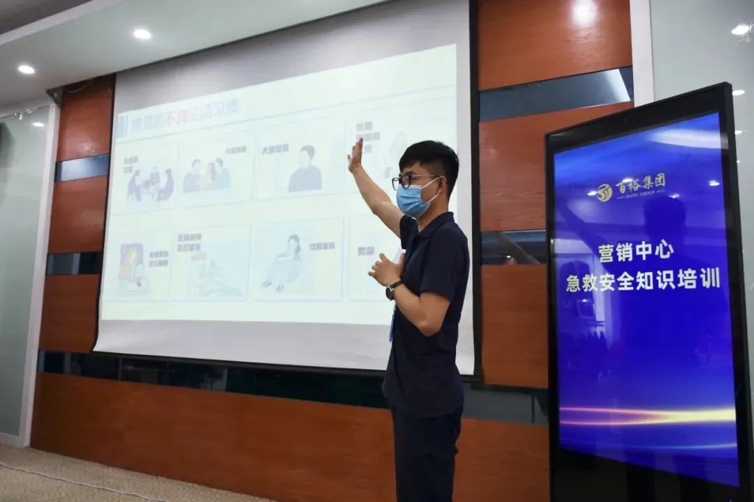為加強營銷中心員工應急救援意識,增強員工健康意識,3月27日,百裕集團營銷中心按照年度培訓計劃組織員工開展了《急救知識及安全教育》培訓。